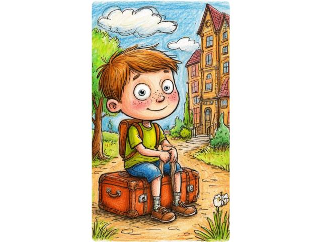 В одном маленьком городке, где улицы были узкими, а дома разноцветными, жил необычный мальчик по имени Ваня. Но все звали его Мальчик-Чемоданчик. А всё потому, что с самого рождения у него на спине рос… настоящий чемодан!