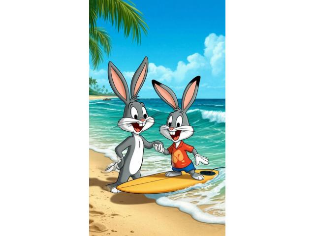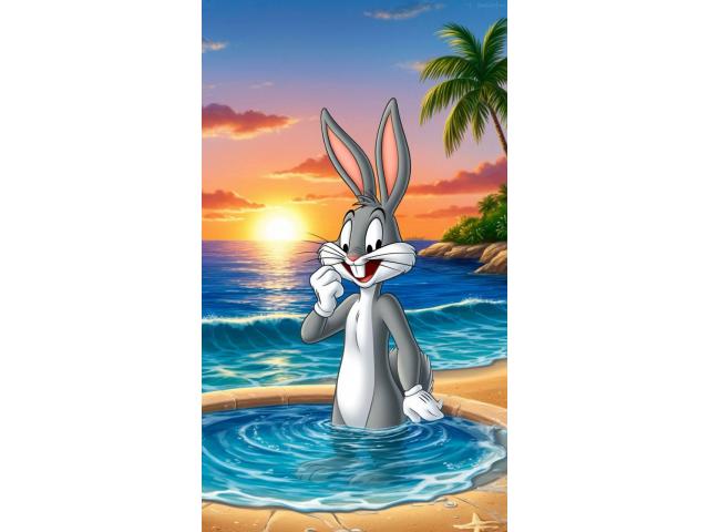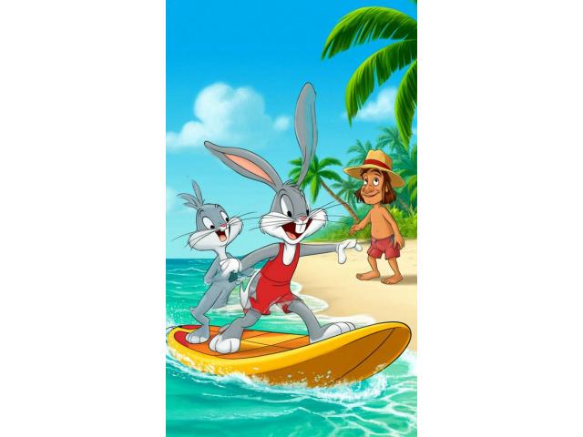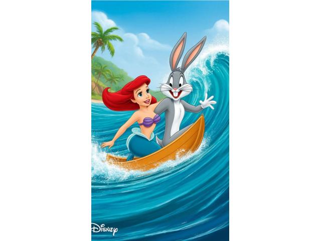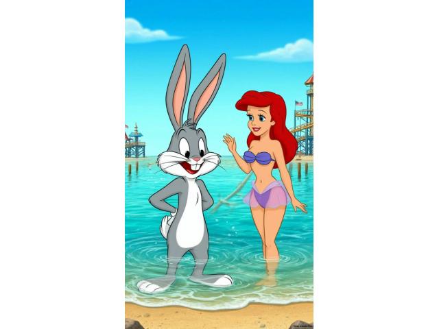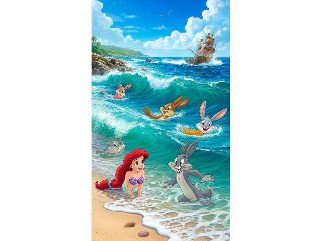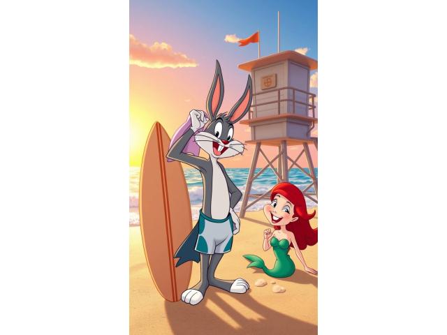 *P.S. А если присмотреться к волнам, можно увидеть, как Русалочка всё ещё подплывает к берегу, проверяя, как Багз Банни и его друзья купаются в океане.*