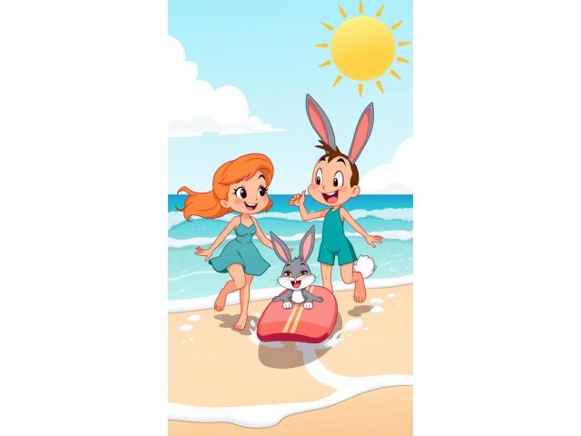 Они шагали, играли с волнами, а потом Лилли показала Багзу Банни, как держаться на воде, используя доску для серфинга, которую одолжили ребята с пляжа.