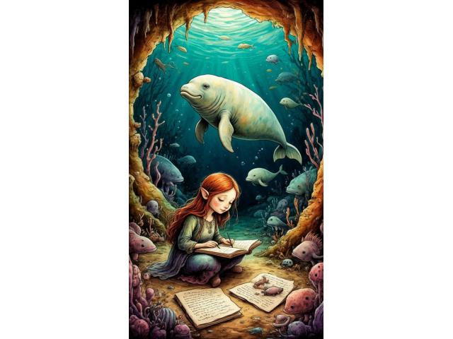 Подошёл к воде. Волны шептали. А из тумана выплыл огромный дюгонь с усами, как у директора школы, и смотрел на него с такой добротой, будто знал его с рождения.